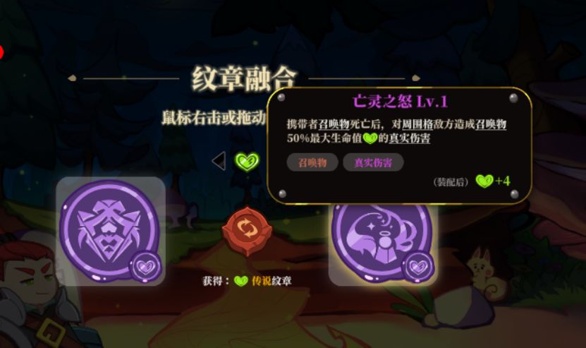 地牢模式开始,每一局胜利都会获得免费的纹章。在纹章选择方面,给大家的建议,还是首选运气成分更低的纹章,越稳的纹章意味着你能走得更远。而收益不大的纹章,就在休息的时候把它给融合掉即可。
