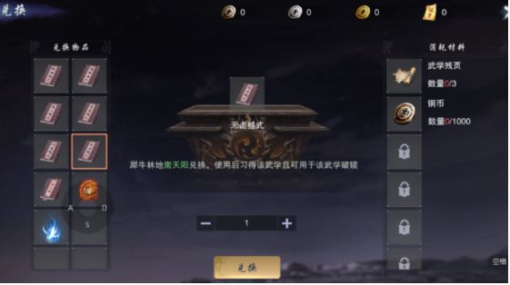 获得三个绑定的武学残页就可以去牧场打牛马凑够1000铜币,直接来犀牛林地找NPC南天阳 。