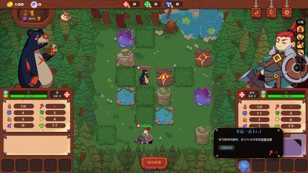 如图所示,两个敌方被我方引到了污水中,而我方3个勇者都站在有利地形中。合理的利用地形真的太关键、太重要了,这点新手一定要尤为注意!