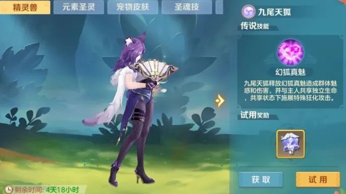 ✦可试用精灵兽、元素圣灵、宠物皮肤、圣魂技、圣灵皮肤;