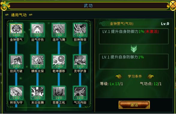 等级达到一定等级后,花费历练值以及秘籍技能书即可激活相对应的技能。