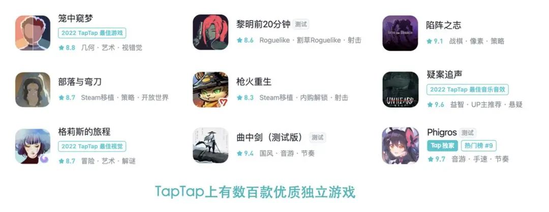 最终,近30款游戏入选,TapTap帮助这些充满闪光点的游戏登上了“游戏发布会”和“抢先畅玩”会场,得到更多玩家关注,也收获了许多有效的评价。