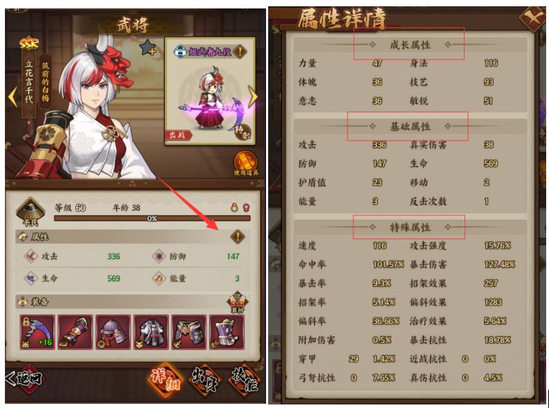 点击属性详情可以看到有成长属性、基础属性和特殊属性。
