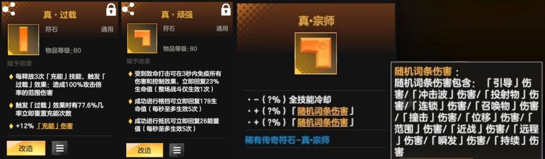 稀有符石:过载、顽强、药侠、宗师、溃烂、猛攻、怪物克星、领域大师、陷阱大师
