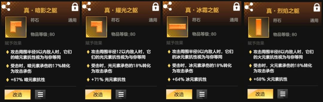 稀有符石:暗影之躯、耀光之躯、冰霜之躯、烈焰之躯、影核、光核、冰核、焰核