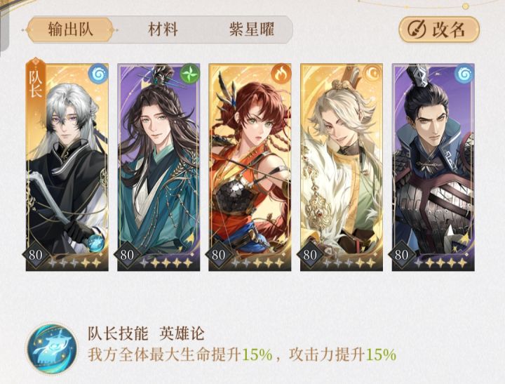 国家队:杨修和孙尚香俩主c,可以根据关卡选不同的c位,杨修,孙尚香可以换成阿婵,周瑜。