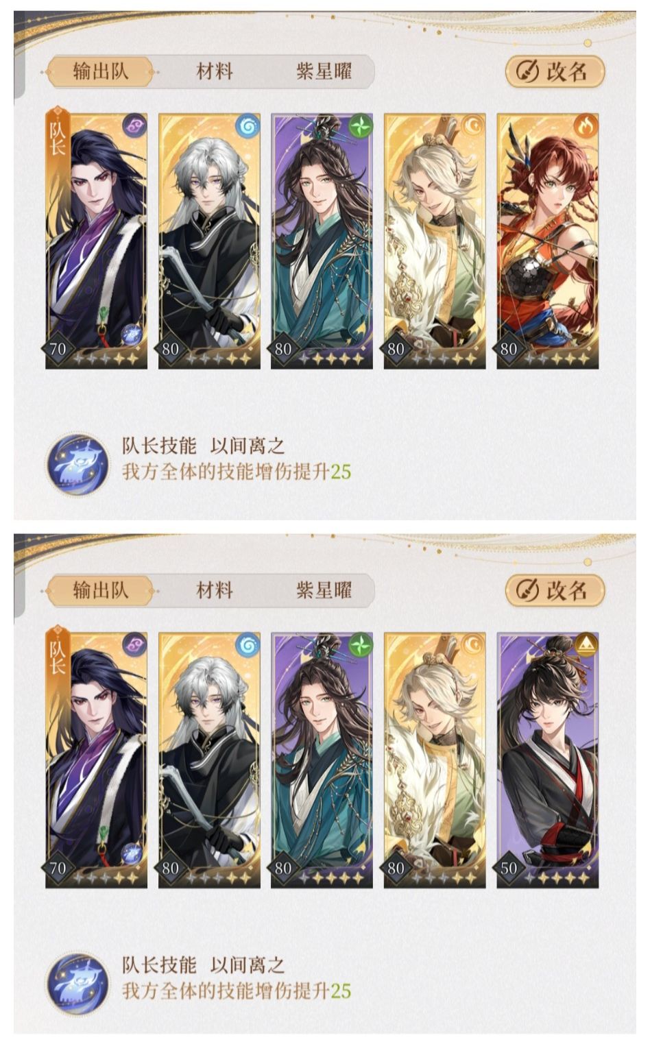 紫卡平民队:紫卡更容易获得,后期也可以5星觉醒,杨修完成新手14天任务就能获得。