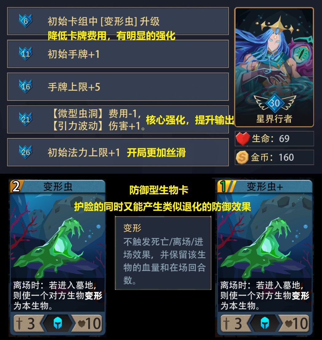 - 初始卡组中1费生物强度普遍高于水系平均水准,继而提高生存率