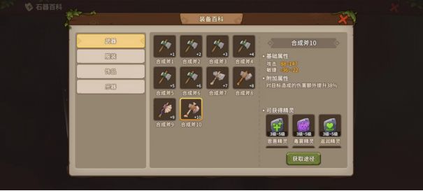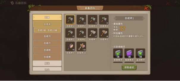 斧头:极高的攻击加成,但会降低自身敏捷。特殊效果:对目标额外造成一定的伤害。