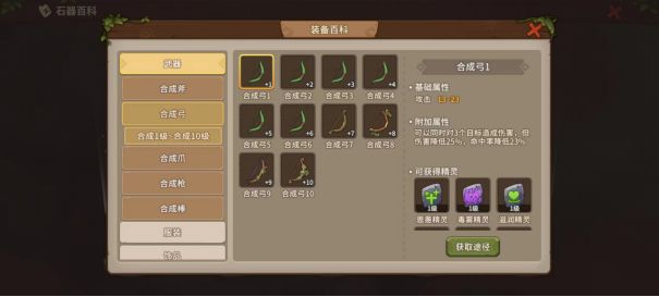 弓:增加一定的攻击力。特殊效果:可以同时对多个目标造成伤害,但是伤害降低,命中率降低。