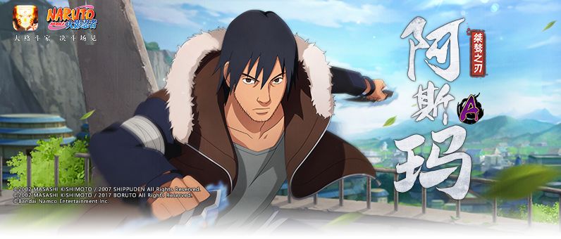 一技能:风属性查克拉刀点击一技能,释放技能一段,阿斯玛化身旋转突进的蓝色陀螺,向前翻滚连击对手。动作结束前再次点击一技能,释放技能二段,阿斯玛交叉双臂稍作蓄力,随即如一道蓝色流光向前突进,用迅猛的斩击再次将对手击飞。