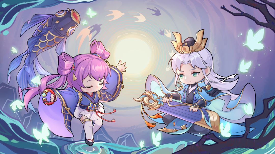 周郎继续轻触琴弦,音符如灵蝶舞飞。琴音清澈悠扬,如同春水荡漾。而小乔则随着琴声起舞,舞姿轻快灵动。她动作流畅自然,回应着古琴的每一个音符,仿佛每一个舞步都是琴音的延伸。琴声与舞姿相互呼应,仿佛告诉世人,他们的心灵是如此相通。