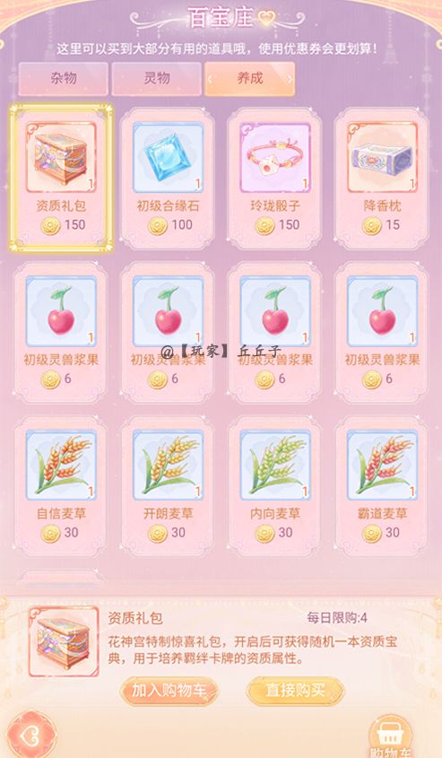 商城的百宝庄也可以购买资质礼包,想必这是花使们最喜欢也最方便的方式了~