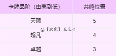 这里要提醒一下诸位花使,根据卡牌的品阶高低,拥有的共鸣位置的数量也是不同的。