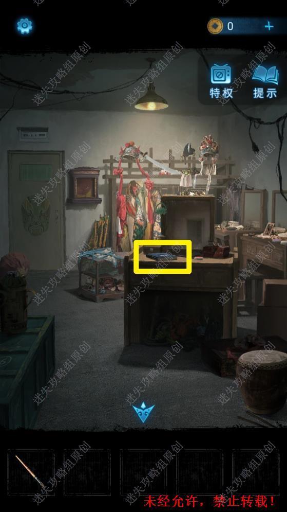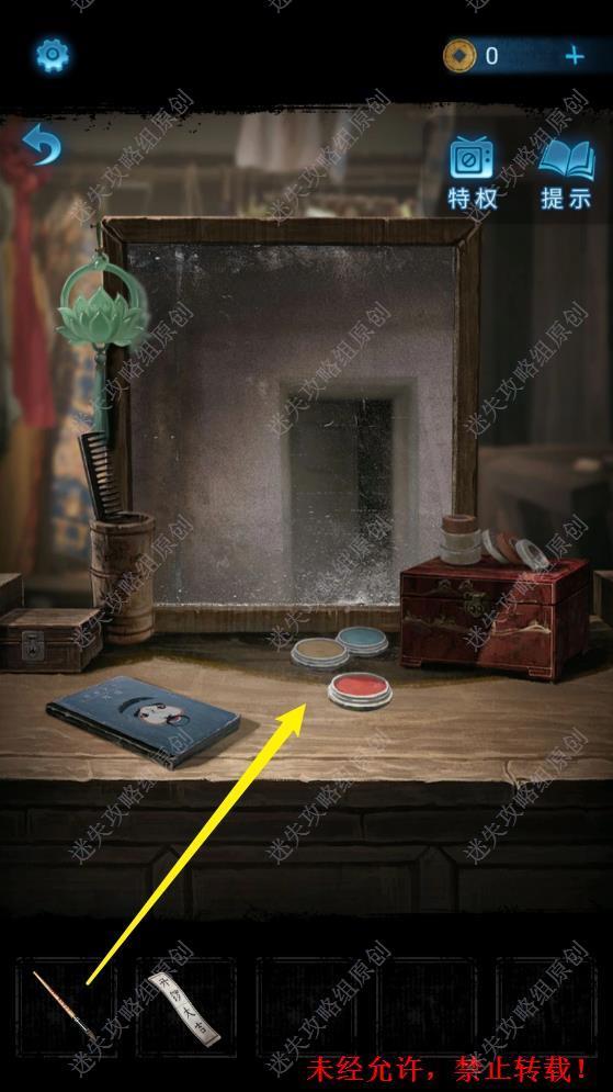9.从墓碑通道进入房间,点击桌子上的书籍,得到进一步线索和开锣大吉的封条。将化妆笔在桌上的颜料盒中蘸取颜料。9 9.1