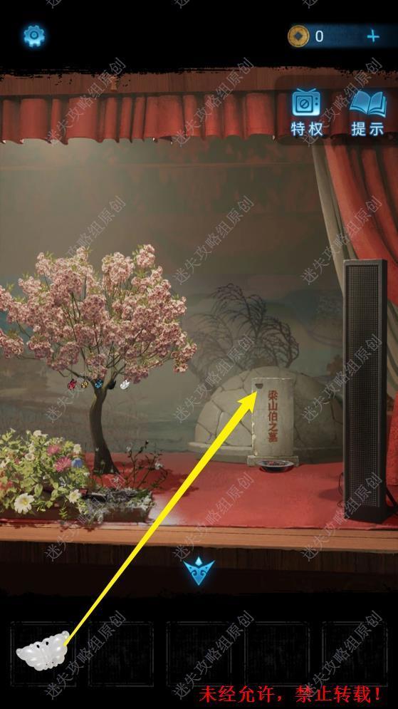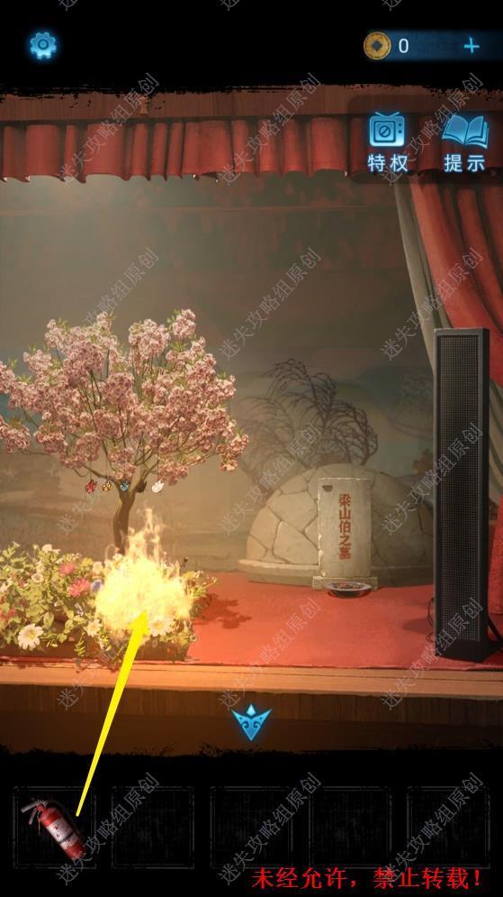 2.用灭火器将戏台上的火灭掉,随后点击起火处拉近镜头,点击白色的蝴蝶, 得到玉蝴蝶。2 2.1