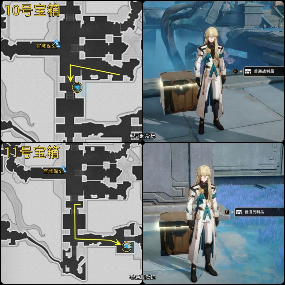 10-11号宝箱:一路朝地图下方前进,留意左侧道路的宝箱即可,这两个宝箱没有难点。