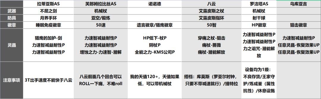 4:敌人会对我方降力智,所以需要对应的力智速减益耐性P针对;(7颗或者单配100%的)
