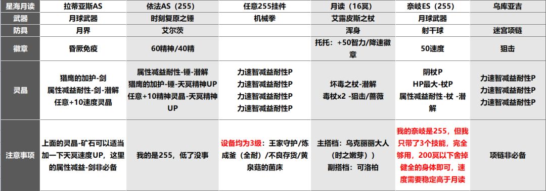 12:守护防护手、或者减伤型唱歌手需要携带睡眠免疫徽章亦或眩晕徽章,也可以带月界,否则可能会猫车