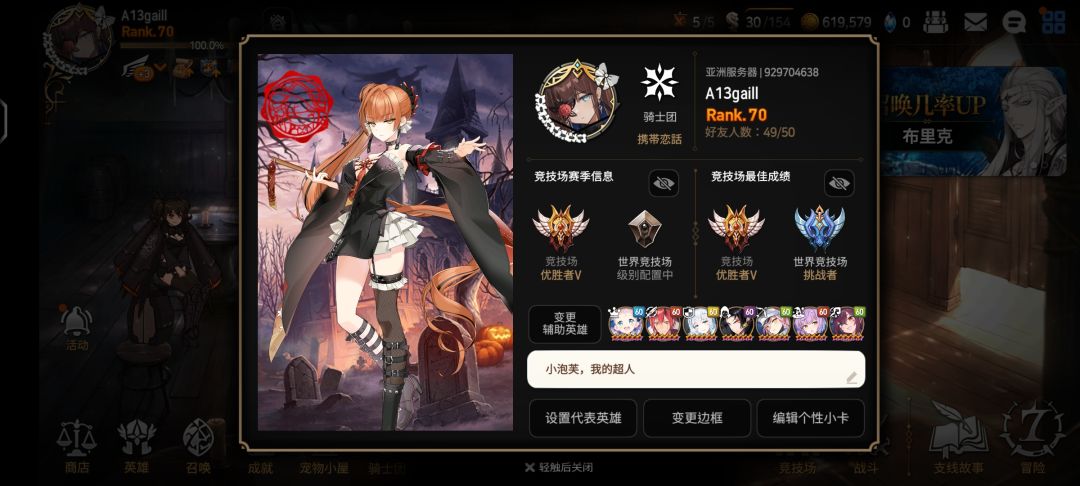 ),玩了个新号,俩个号都是自创,都是jjc直线升4k,主线一路通关,新号更是一次过智武(老号卡了两个月),深渊直升90,考验殿堂也能sss,个人感觉还是有游戏理解的,文章有什么不对的地方或者还有什么疑问可以在评论区告诉我,谢谢大家的阅读。 纪念一下亚服106天70级,第一次打rta直接就100场50胜率到了1900(小泡芙我的超人),三周jjc从4k分到5k分,第一周到4600,第二周从4400到4800,第三周逮着光大姐打三天就上了400分直接5k养老(个人阵容:暗剪刀、红丸(史莱姆联动)、木璐璐卡(五星限定木奶海洋香气璐璐卡)、艾庭(四章主角三星光刺客),对面一动光大姐直接拉我三个,红丸三技能加二技能一般能先手秒一两个输出,然后木璐璐卡解弱化驱散buff,暗剪刀补伤害和加技能cd,然后我艾庭比较快有267速度,一般能在对面大姐以外人动之前动起来,再开个大清个c位顺便保队友,防队的话我主要靠木璐璐卡和小泡芙加上艾庭和小光盾,因为伯利安还没拉起来,后面会伯利安换艾庭)。