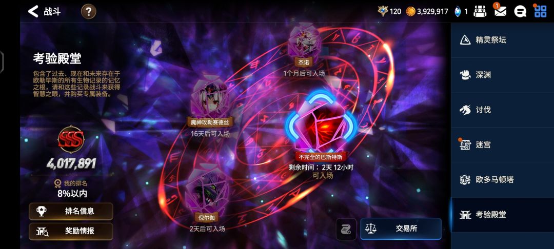 ,目前12个光暗五,俩个重复,排除月光缘分俩个,神秘召唤俩个,月光一个(月光是真非,第三次保底才给个泰温),剩下7个都是赌圣约出的),当然最正确的还是留着抽限定,然后金方块用来买月光券抽光暗角色,光暗角色才是e7PVP的主力。(不要问我为什么水空了,我就想知道xm是不是从国内哪个大厂找了这个新活动的策划,不过木璐璐卡真的强,还有这夏活装备获取也很赚,仓库一堆反击套、穿透套)。 角色养成方面,前面说过的龙队方面,装备起来后,可以考虑一期up刷下愤怒套给水镰可以大幅提高打龙速度,我水镰这套愤怒套虽然只有11w分,但是打起来应该跟13 14w的攻击套差不多,龙队之后,就要拉主线队,前面可以安洁当前排然后两个三个c速推图,过完ep2后,拉斯开转职后,这时候也该第二个讨伐任务了,拿到第二套生命套给拉斯等祭坛up做转职任务(一定要多刷火符文我记得好像是420上级和几十高级),拉斯转职后非常强不管是PVE还是PVP都能用,然后继续推图过ep3,这时候开女主(四星火法师玫勒赛德丝(梅赛德斯奔驰))转职,女主转职后强度也在线虽然算不上t0,但是打第四章的智武很好用,建议把刷龙最好的速度爆率套给她。再讲讲个人4-10-10智武打法,打智武需要注意他的机制,己方角色每行动一次就会加一层黑暗气息buff,buff到达四层时,智武会发动发动强力攻击,而烧魂可以重置buff层数,而和他同时登场的还有个黑暗灯,灯每次受击会提供3魂(反击额外攻击不行),所以我们尽量要用群攻角色或者普攻双击角色来打,例如女主、暗法、水扇、暗dd(五星暗刺客,执行官维德瑞),还要考虑魂的数量所以尽量选择一个法师带本高破魂书(四星法师神器塔克赫尔古书满破能提供20初始魂,PVP非常好用),建议阵容是暗法(带魂书)、女主、拉斯、偶像,如果自己练度有水扇、伯利安之类的群攻角色的也可以直接用,再嫖个好友女主或者水扇之类的,偶像换个烧魂少的奶也行,这里最好像我前面说的,把送的几套75生命拉满,把生命最高给拉斯速度最高给偶像,我的拉斯用送的75就有3w血,然后就是打的时候需要注意的就是,女主拉斯烧魂都是二技能有CD的,就算没到四阶段黑暗气息,用的时候也需要直接烧魂,暗法和偶像可以等四阶段再烧魂,如果有血线压力也可以提前偶像烧魂,还有偶像的普通普攻记得打灯,差不多就能过了,如果还打不过,就提提c位练度。