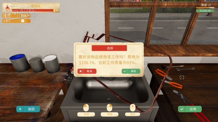 然而,只要玩家有一定的资本积累,购买几个高级工作台,就能体验到全新的“翻新”玩法。在游戏中,玩家可以亲自清洗、喷砂和重新上色大部分零件。用水枪逐渐清洗零件上的污渍,然后使用喷砂工具将划痕严重的物品表面磨光,最后选择合适的颜色重新喷涂。一系列操作之后,一个布满灰尘、划痕的零件,就像刚出厂一样,充满成就感和放松感。