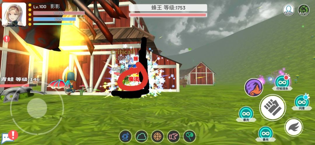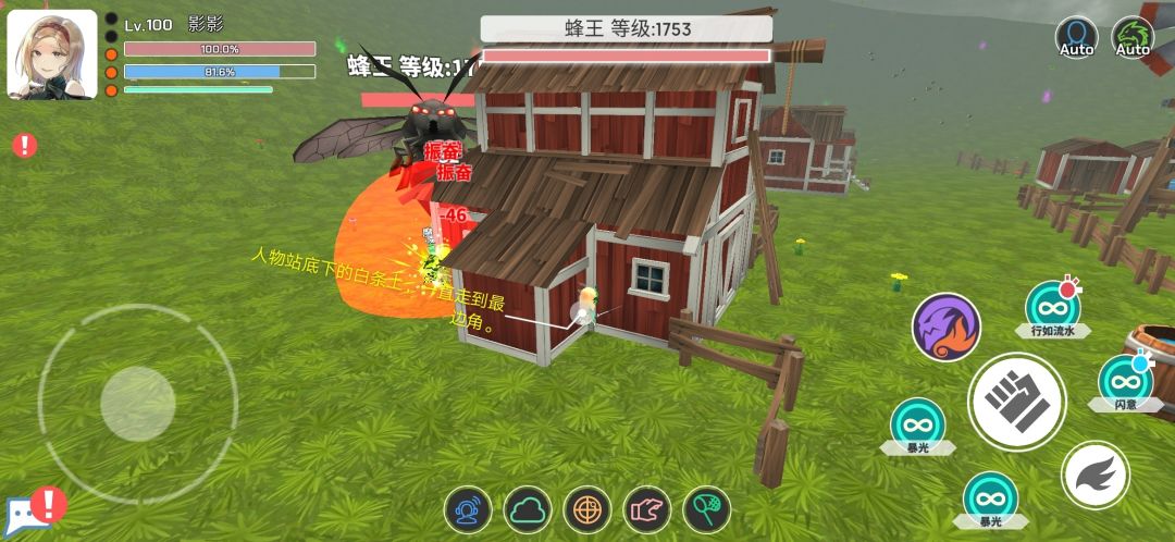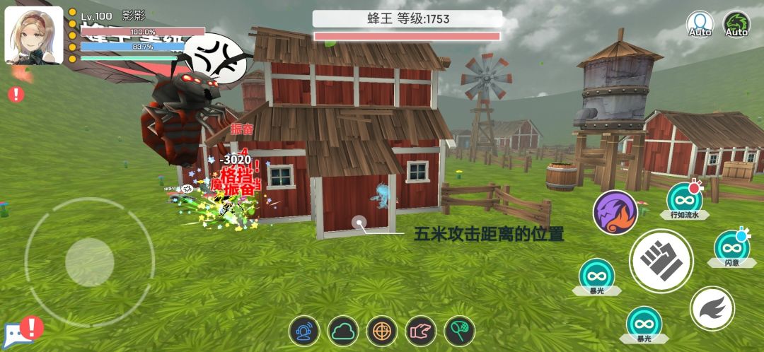 之前让蜂王在援助的左上角就是为了这个,此时蜂王的位置是我们六米距离打不到的,但是蜂王召唤出来的蜜蜂却刚刚好在攻击范围之内。