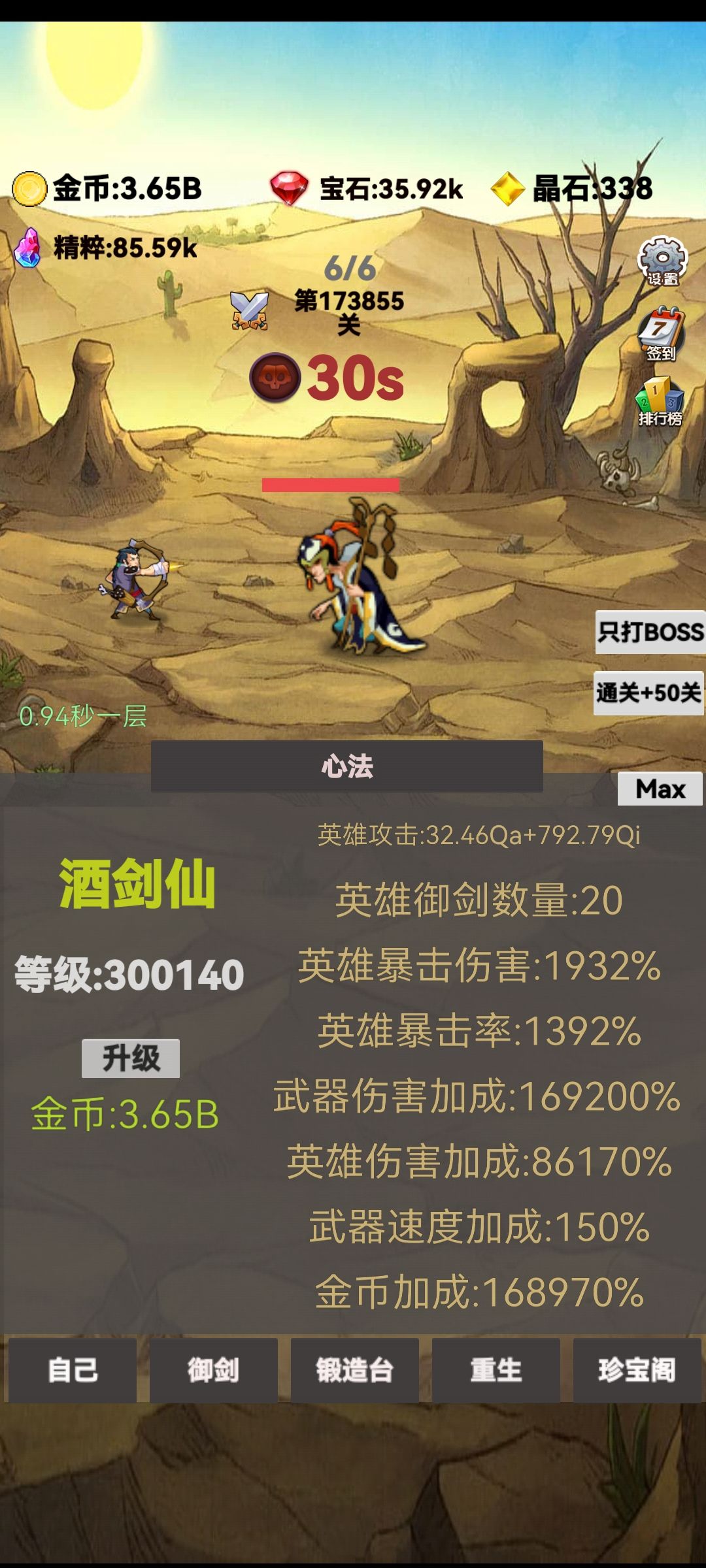 游戏的核心是重生获得精粹,精粹可以无限大,所带来的加成也是指数级爆炸成长的。