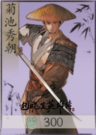 菊池秀朝(九州菊池家少主):江湖紫卡,约期举事,伺机:2费,造成我方手牌数的冲锋伤害,当本牌位于手牌牌首或牌尾时,降低1点消耗。