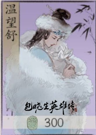 温望舒(崆峒派掌门,薛胜衣之妻)江湖紫卡,醉月迷津,藏月:2费,将上个敌方回合敌方受到的伤害转化等量治疗。