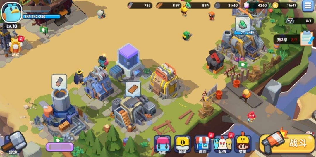 【战斗】:打理好小镇里的一切,就可以从这里出发,去清扫小僵尸获取更多材料啦!