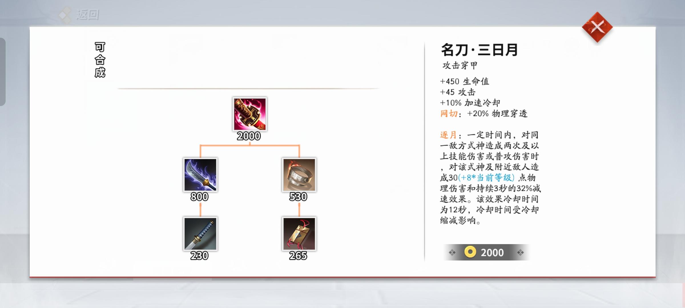 ●缺点:少了瞬发的一次被动伤害。(那么这个伤害去哪了呢,个人理解是移到了三日月的被动里)