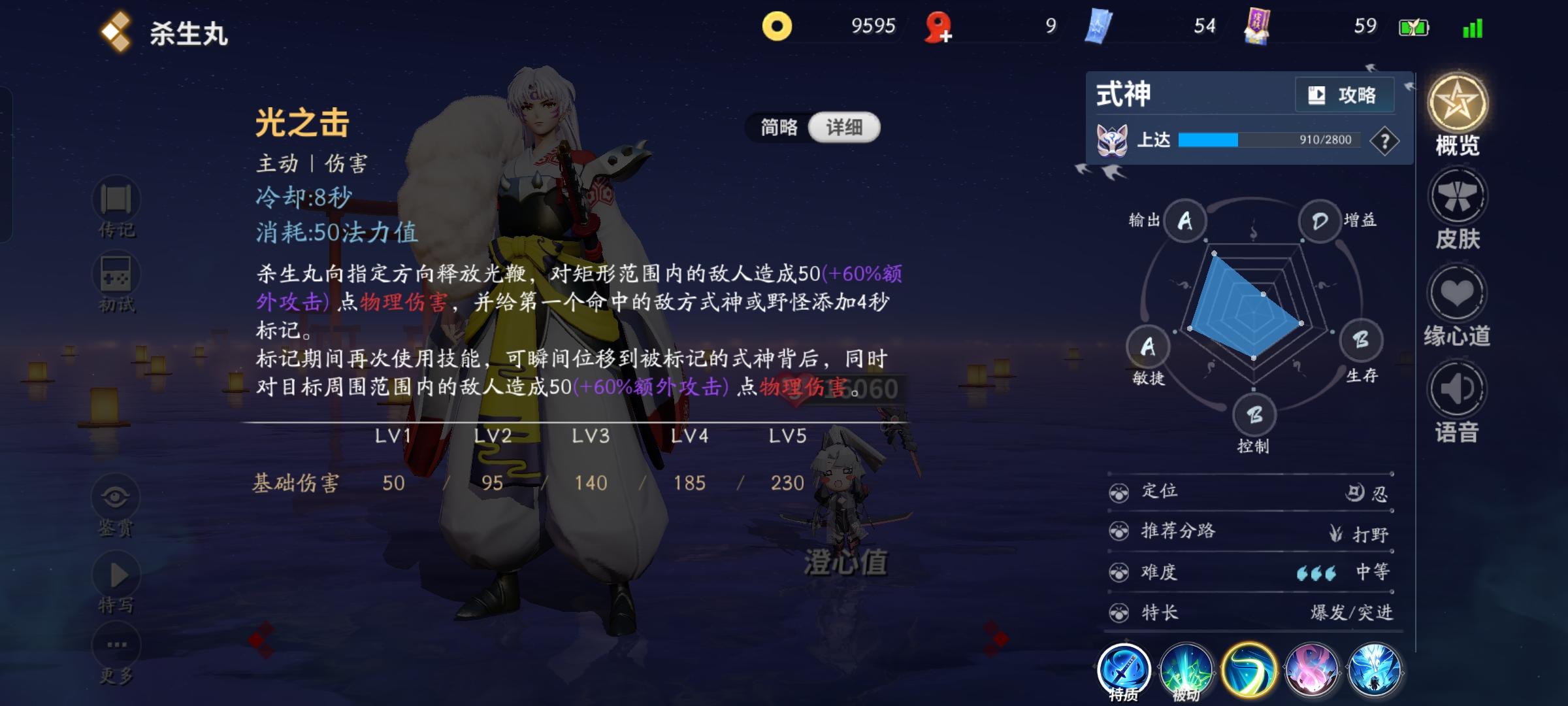 杀生丸的连招以及伤害节奏,与阴阳转轮挺契合的,关键点就是在这个一技能。
