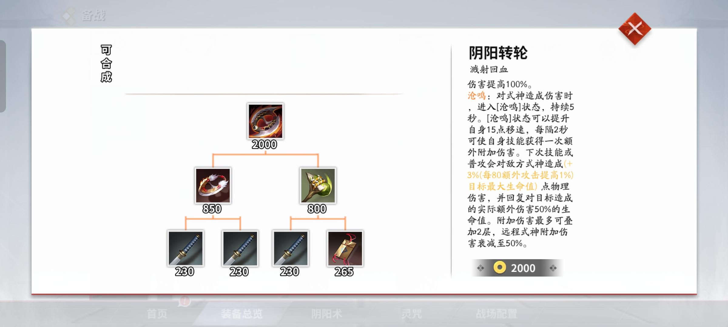 原本是不想发的(懒癌发作(°ー°〃)),但是看见初试效果还不错,还是决定发一下,不过现在应该很多人都研究了一下阴阳转轮这件装备。长话短说,两个部分:装备篇和式神篇。
