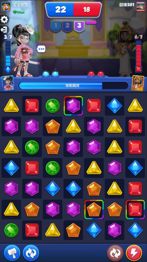 刷新技能算是攻守兼备,既可以在宝石分布不理想时,有一次重Roll的机会,也可以在结束回合前使用,破坏对手的行动规划。