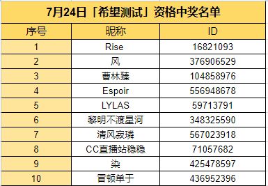 各位流浪者,“希望测试”资格中奖名单陆续公布中,快来看看有无你的名额!