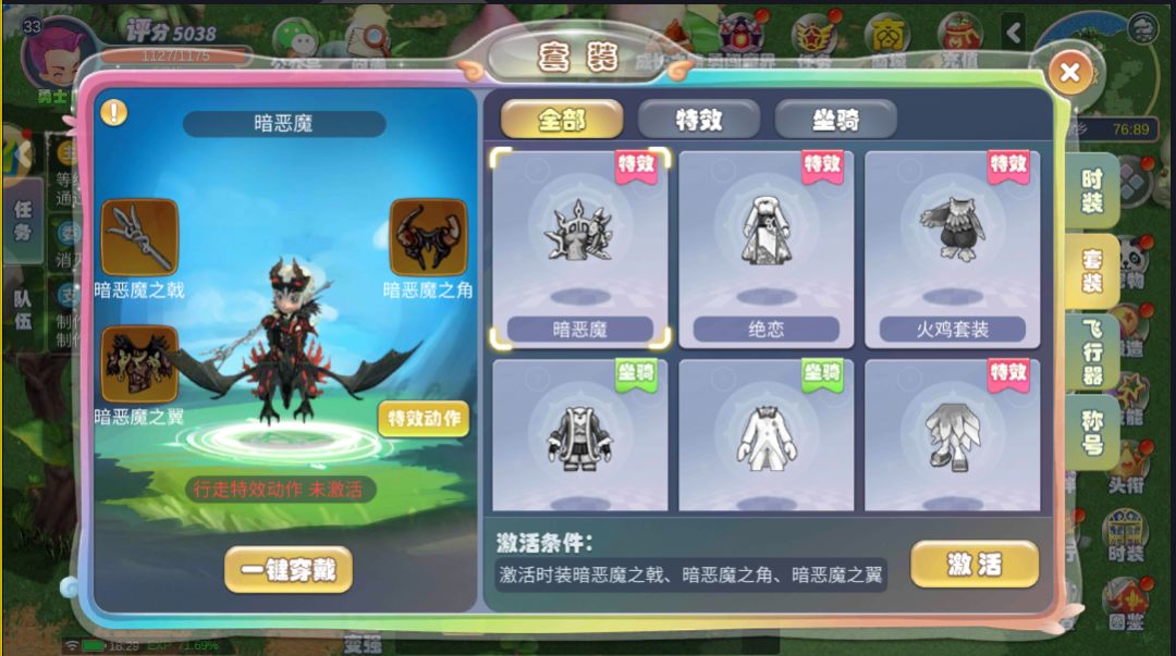 游戏里面还有套装的玩法,套装就是完整一套的时装。这些套装外观华丽、精美。收集到相对应的一套时装还可以激活套装属性。