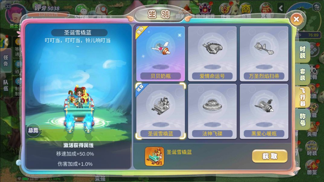 然后就是飞行器,就相当于坐骑,幻灵大冒险手游里面的飞行器不仅样式多,外观还精美,里面的飞行器都是全职业通用的,并且有的飞行器还有额外的属性。