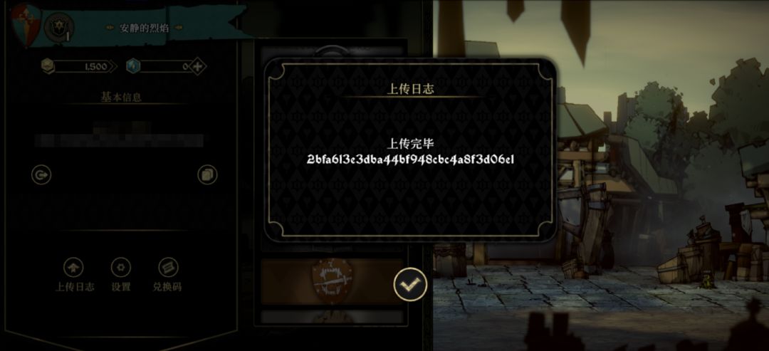 上传位置2:loading界面左下角[上传日志]