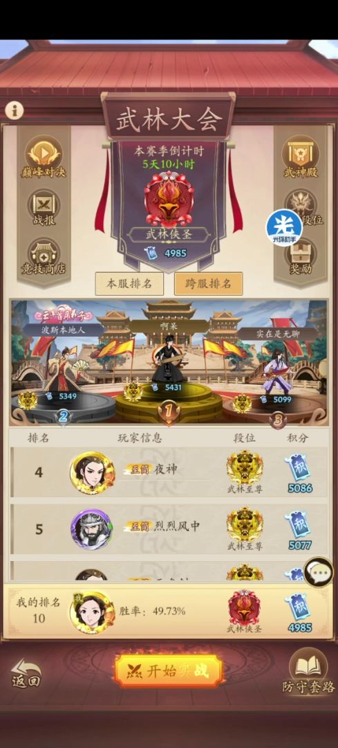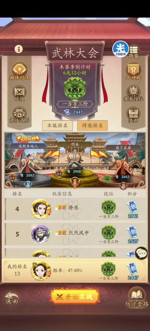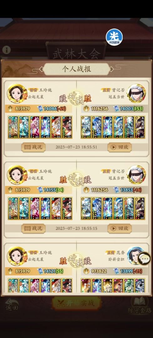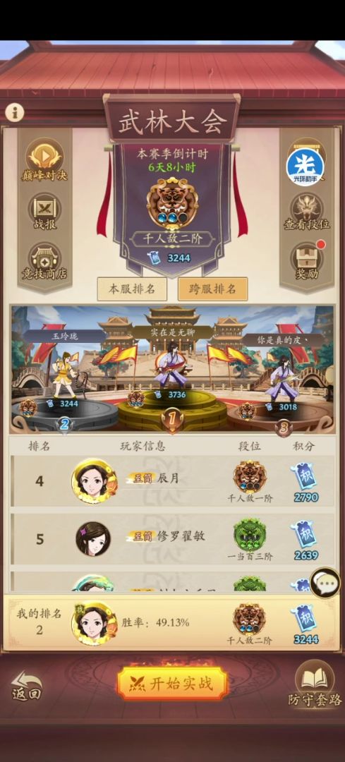 10.擂台卷常备150-200张,尽量每周能拿3400分奖励,战力不高的话需要区里大佬配合下招式。