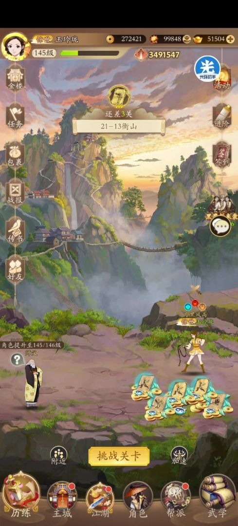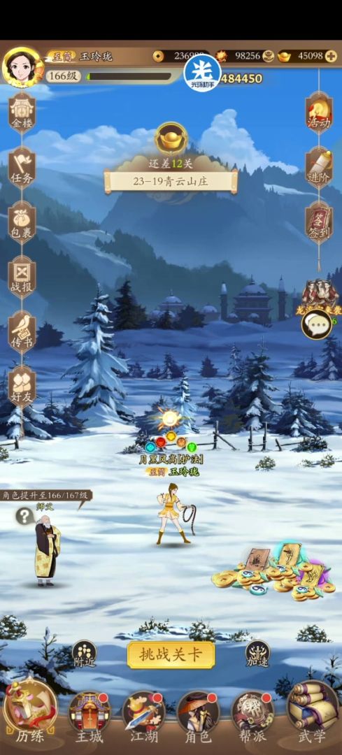 11.华山前期很好爆,楼主从少林后开始越来越难爆,所以抓住前期猛赚元宝吧。