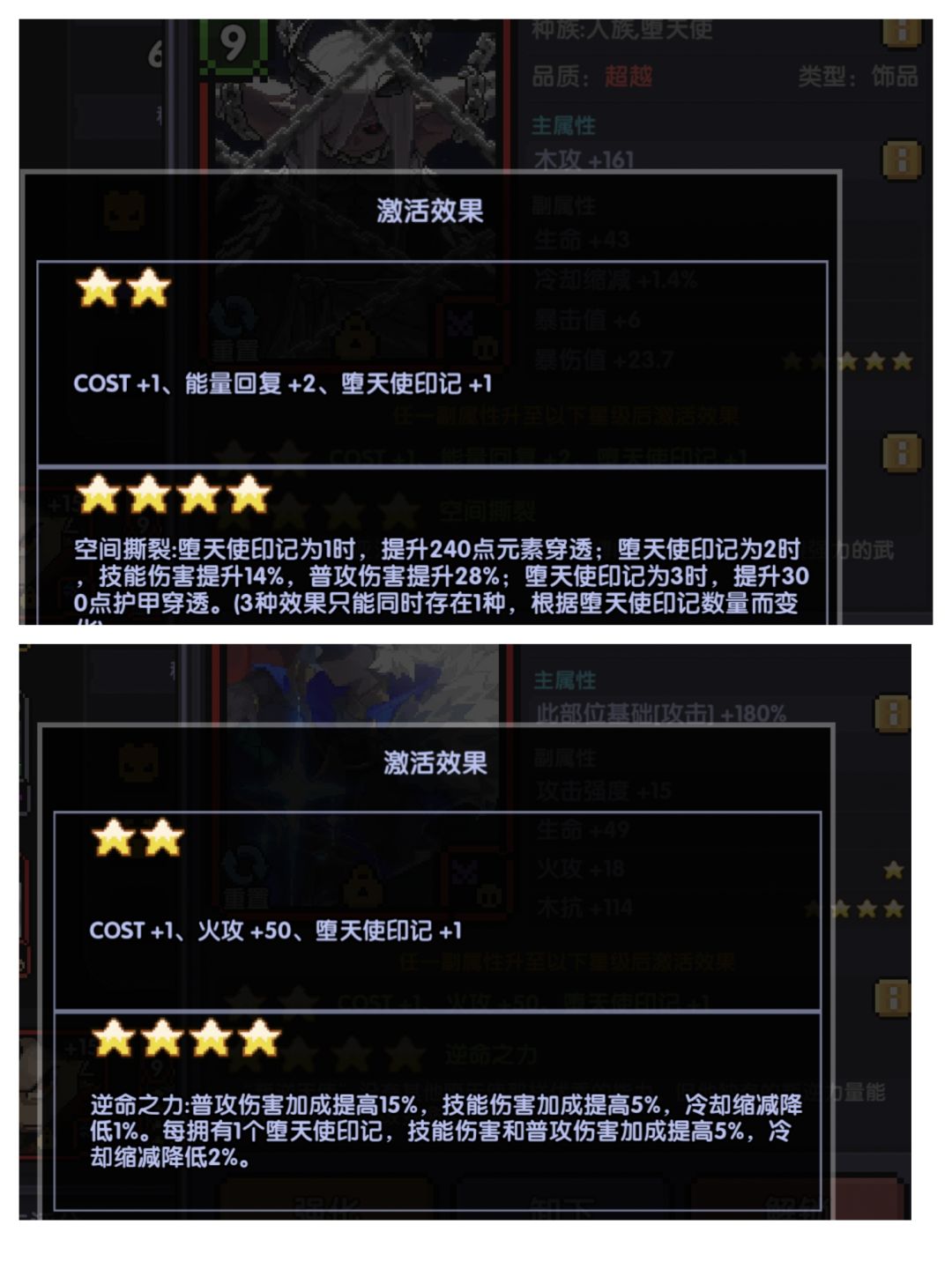 凡尼+亚汉:百分比攻强、木功。 这两张卡你甚至可以不考虑主属性,两张四星效果的加成太高了,28+15+5*2的普伤,14+5+5*2的技伤,配合符文效果合计82普攻伤害!木堕天使直接虚晃一枪进仓库吃土!