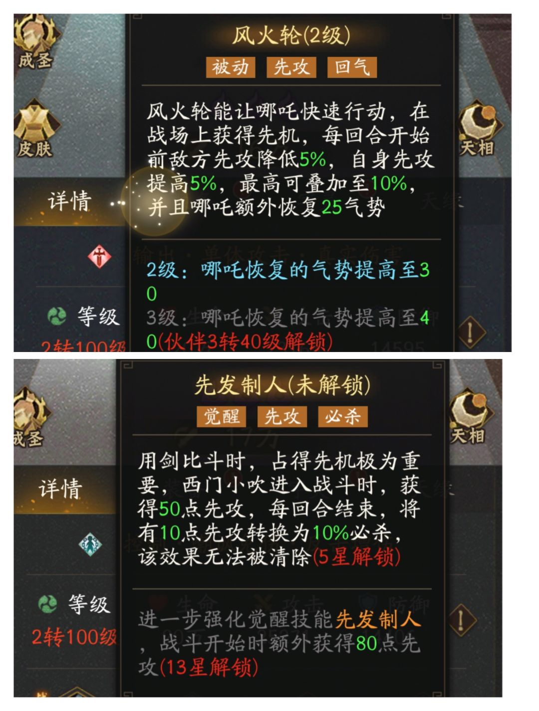战法6%真实伤害,而且击杀敌人之后,可以给全体成员回血,攻击有概率附加法宝效果。被动偷攻降攻【天相】1.攻击不会被敌人格挡,并且能无视大部分防御;伤害爆炸