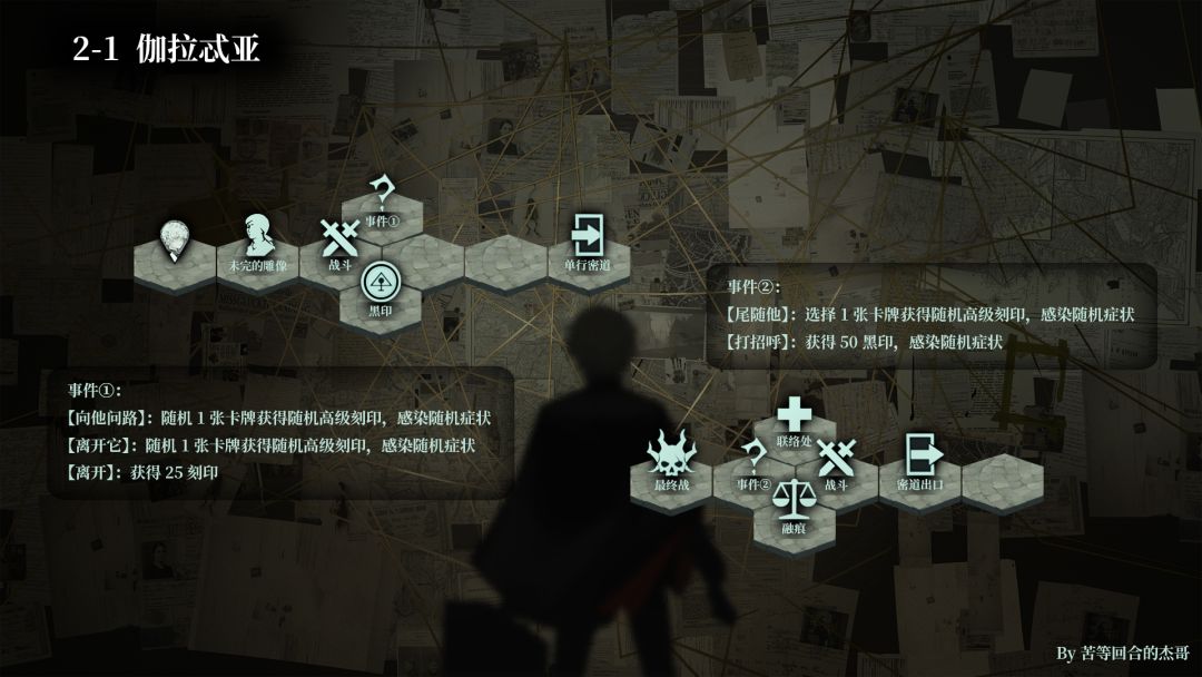 补充一点,图里的事件描述“获得随机XXXX”等,在游戏中体现为你能看到获得哪一种,但是每一局游戏同样的选项最后获得的都可能不一样。
