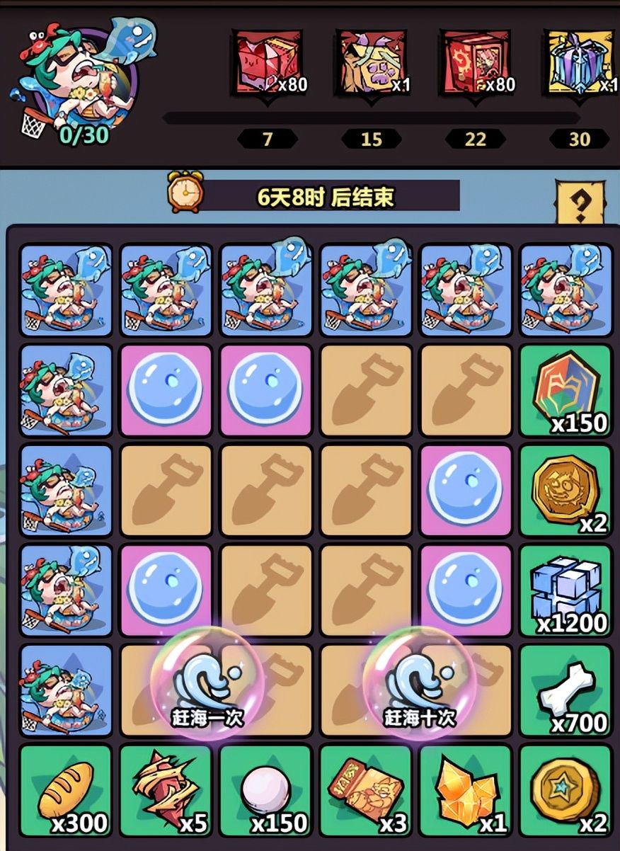 本文首发【猎人攻略组】公众号,未经授权禁止“抄袭文章”转载至其他平台。哈喽,各位小伙伴们大家好,小c我啊在昨天给大家更新了一期后羿阵容和最新微信深渊迷宫图,小c今天这篇的文章接着给大家分享沙滩挑战小技巧让你在限时内完成消除,有感兴趣的小伙伴们接着往下看吧!在汪汪的日夜期待中,夏日庆典终于来了!本次活动将于2023年7月21日至7月27日举行,只要是新角色创号第8天及以上的玩家都可以参与。本次活动是一场集挑战玩法和赶海活动于一体的盛宴,为大家带来丰厚的奖励和无尽的乐趣。本文将为大家介绍本次活动的具体规则和注意事项。沙滩派对沙滩派对影响着出传说道具自选宝箱的概率,运气不好的就需要更多的浪花才行。使用浪花点击赶海一次/赶海十次,即可随机点亮格子,当连成一线时,即可冲浪一路到达对岸,获得对应的奖励。累计有7,15,22,30个庄周成功到达对岸时,可以领取累计进度奖励哟!包含【随机红将碎片】、【符文神器自选箱】、【万能红将碎片】、【传说道具自选箱】。