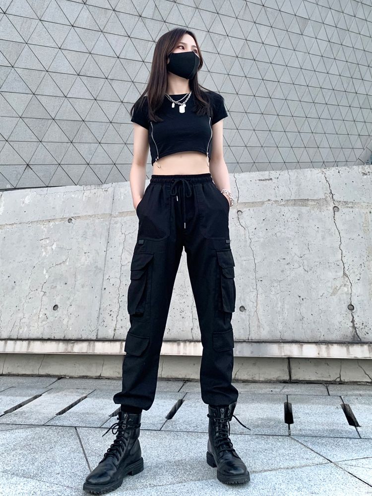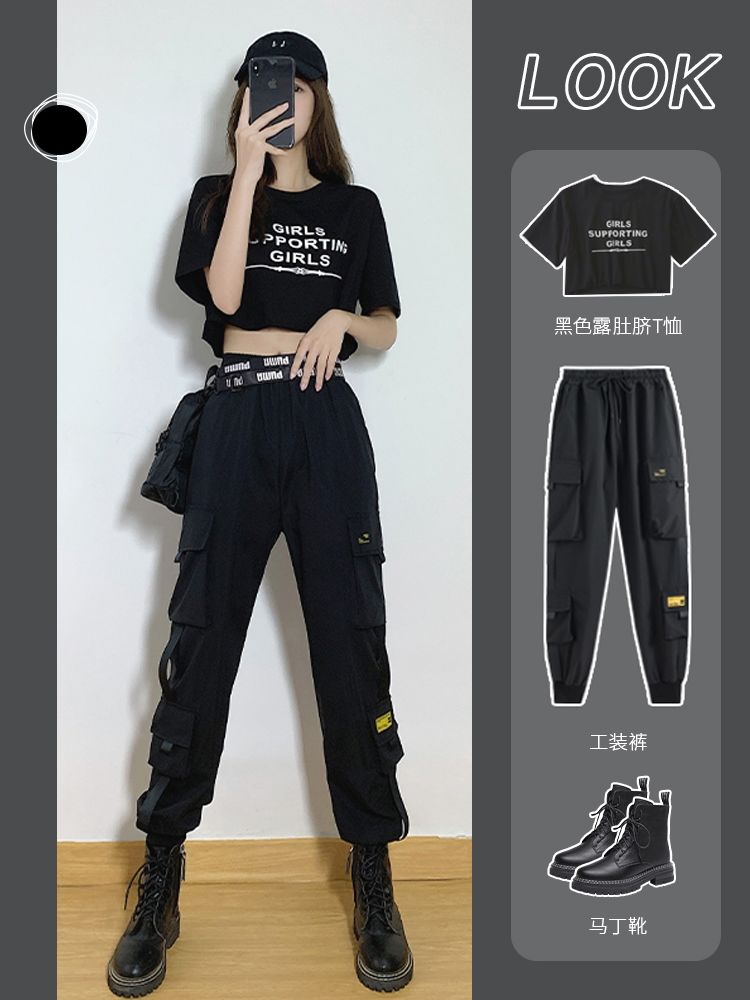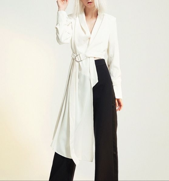 还可以有一些飒一点的衣服,比如不规则上衣+高腰裤子