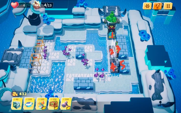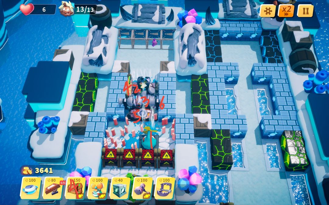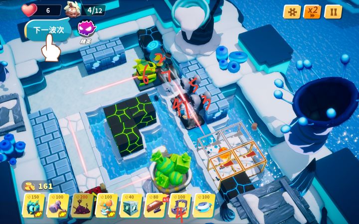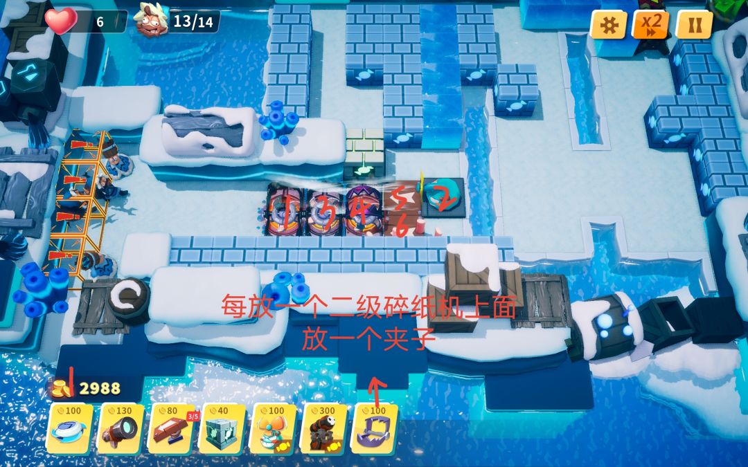 3—4 开局等小怪敲完两块冰后放置割草机,后续根据地形调整陷阱角度。可能会有一两个小怪漏掉,调整割草机位置消灭小怪后可再移回原位。