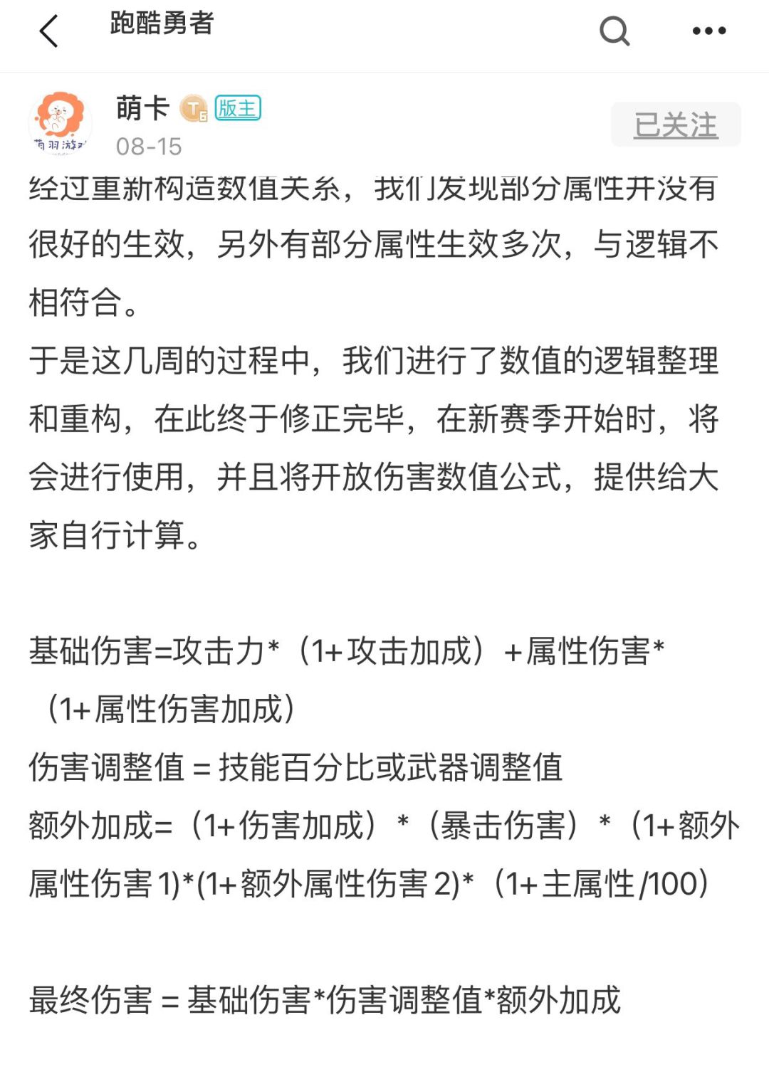 职业选择还是看个人喜欢,或者装备哪个职业套凑齐就玩哪个职业也行。 谁知道后期会不会改呢。建议各职业热门套装都保留,不要合成!!!能随版本转换职业!!正题共有三部分,整篇如下!! ================分割线=============== 一、基础篇 (🌟最终成型后,一定以自己图内面板,套进用官方“最终伤害”的公式计算最合适各种搭配进行调整,因为自身属性面板总会和别人不同,是会有浮动差距滴,记得把三年级数学知识用上算算,计算公式滑动看图)