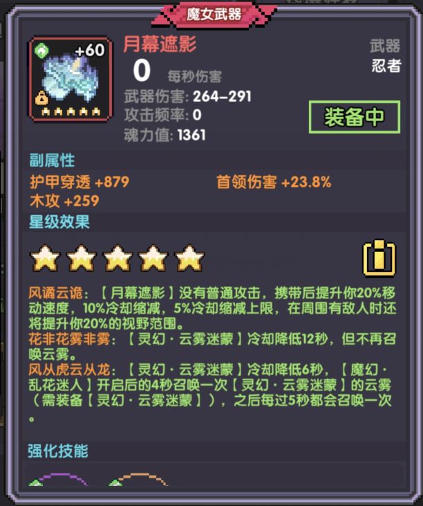 解析:由于120竞速,选择最大收益的装备(冤魂头以及龙牙),饿狼是忍者单人必带披风,狸猫叶可以使用般若/阴影潜行激活,极影是因为目前木忍并没有非常适配的鞋子如若觉得自己的初始伤害并不够,可以将鞋子替换成迅停