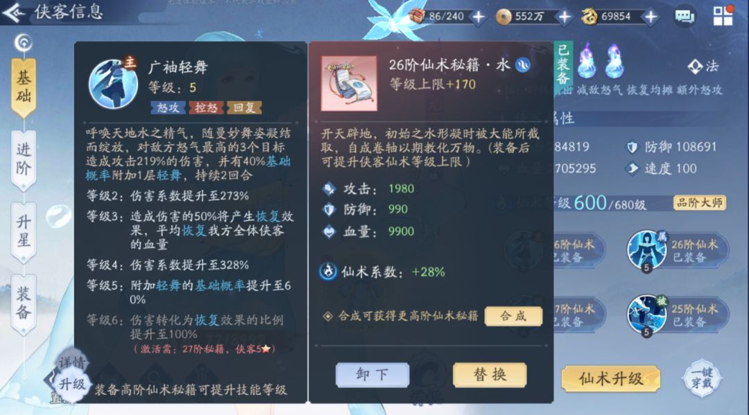 缺点:目前这套阵容会被火南宫、飞蓬、风苏媚等侠客克制